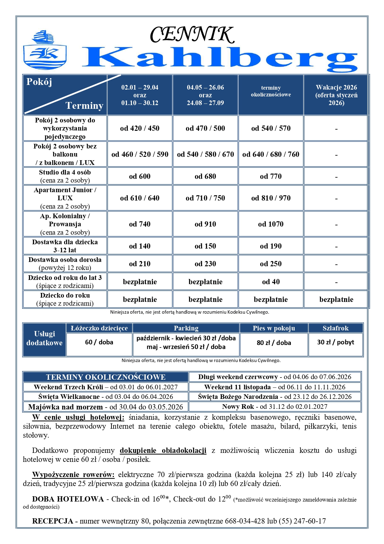 Ważne informacje dot. Hotelu Kahlberg