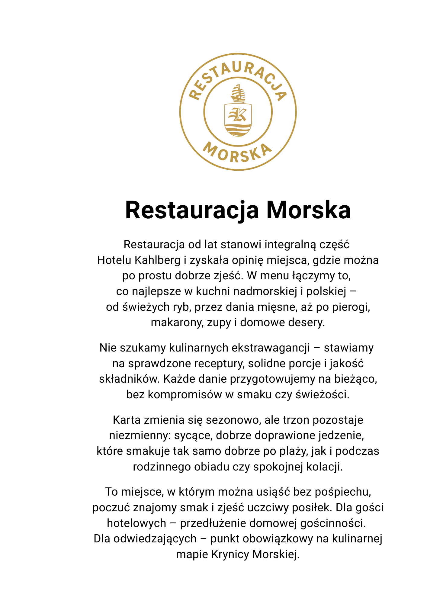 Hotel Kahlberg*** zaprasza do skorzystania z Restauracji „Morskiej”