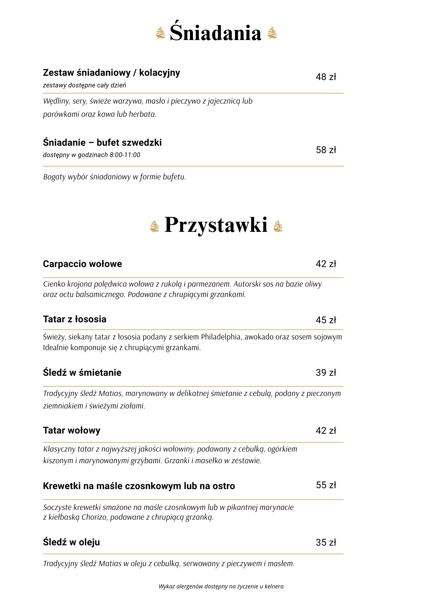 Śniadania serwowane w godzinach od 8:00 do 11:00 / Breakfast served from 8:00 to 11:00